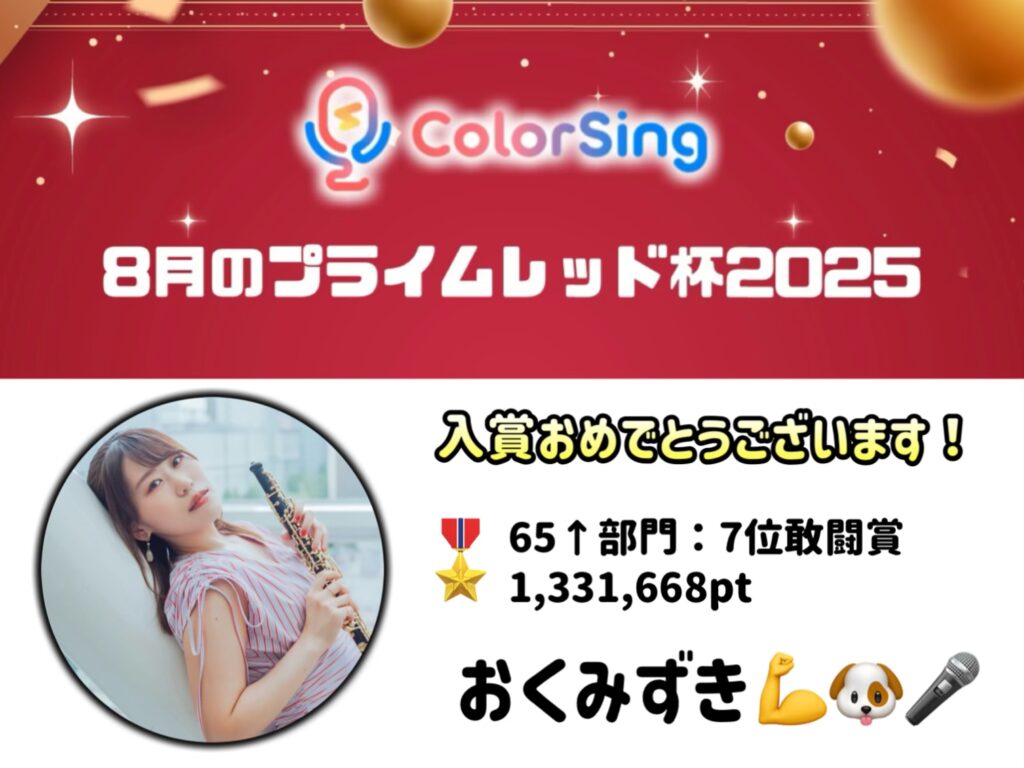 2025年8月23日から28日にColorSingにて開催された『8月のプライムレッド杯2025』に弊社所属ライバーのおくみずきさんが入賞しました!たくさんの応援ありがとうございました!