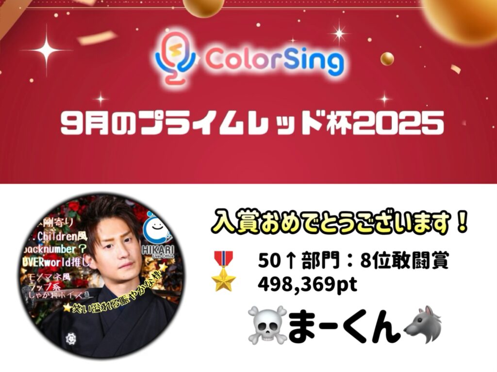ColorSing『9月のプライムレッド杯2025』に所属ライバーが2名入賞しました!