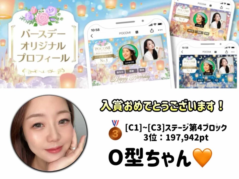 Pococha『バースデーオリジナルプロフィール』にて「O型ちゃん」さんが3位に入賞しました!