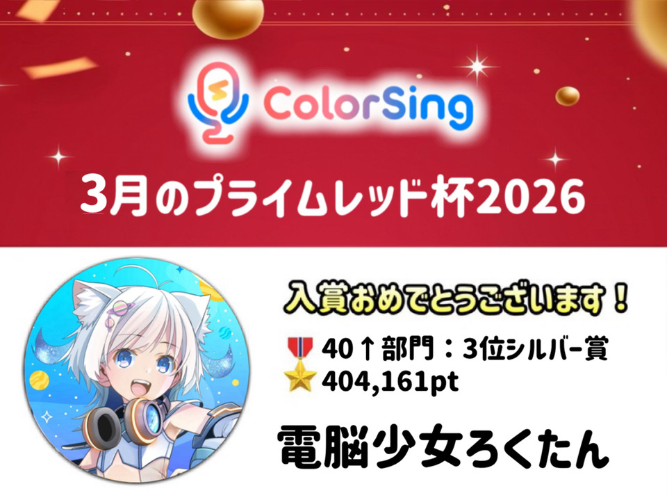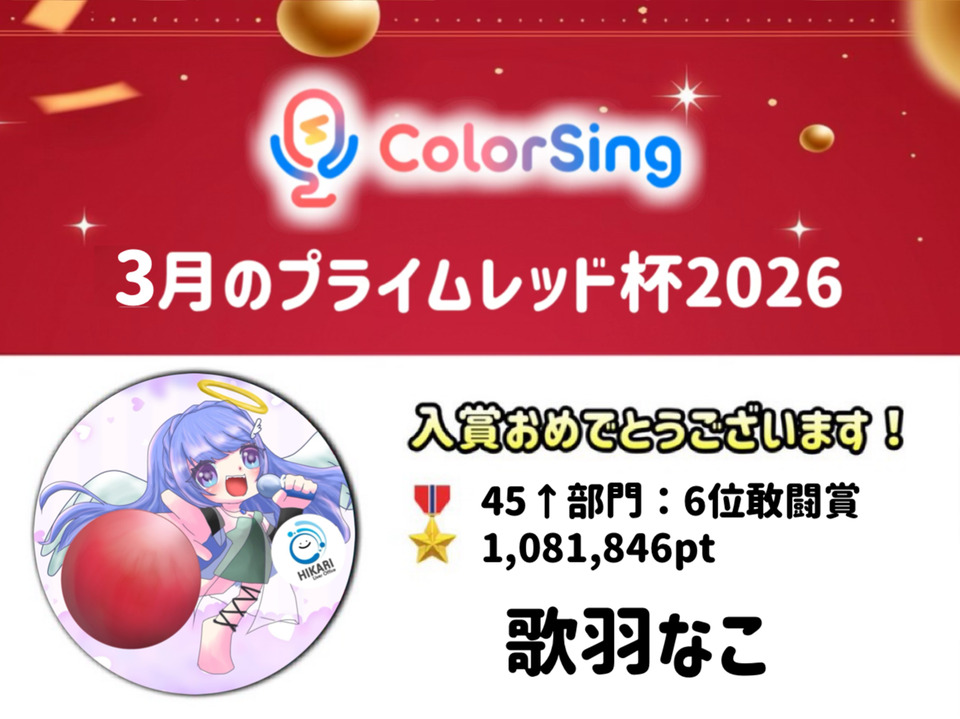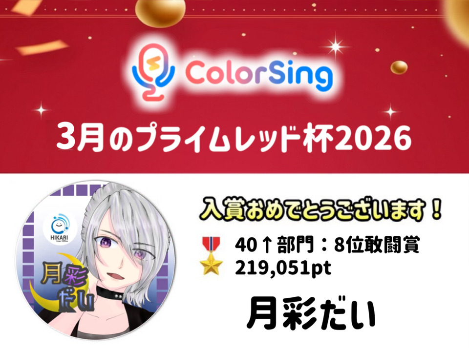 ColorSing『3月のプライムレッド杯2026』に所属ライバーが入賞しました!